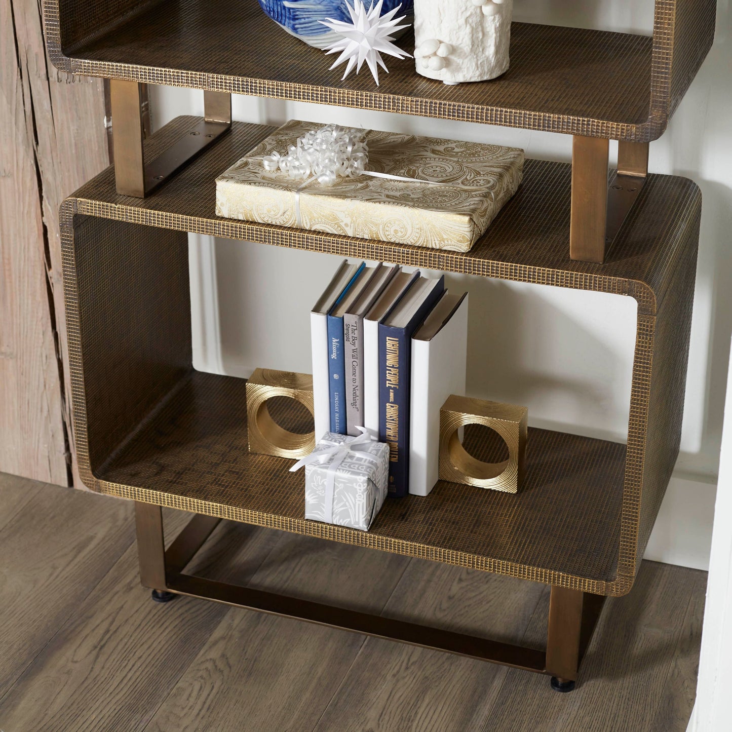 The Karl Bookends in Brass from Villa & House are a pair of decorative and glamorous petite bookends, perfect for the countertop, desktop, or bookshelf. Made of solid hand-cast brass and etched with concentric circular patterns, the Karl Bookends are inspired by tree rings.
