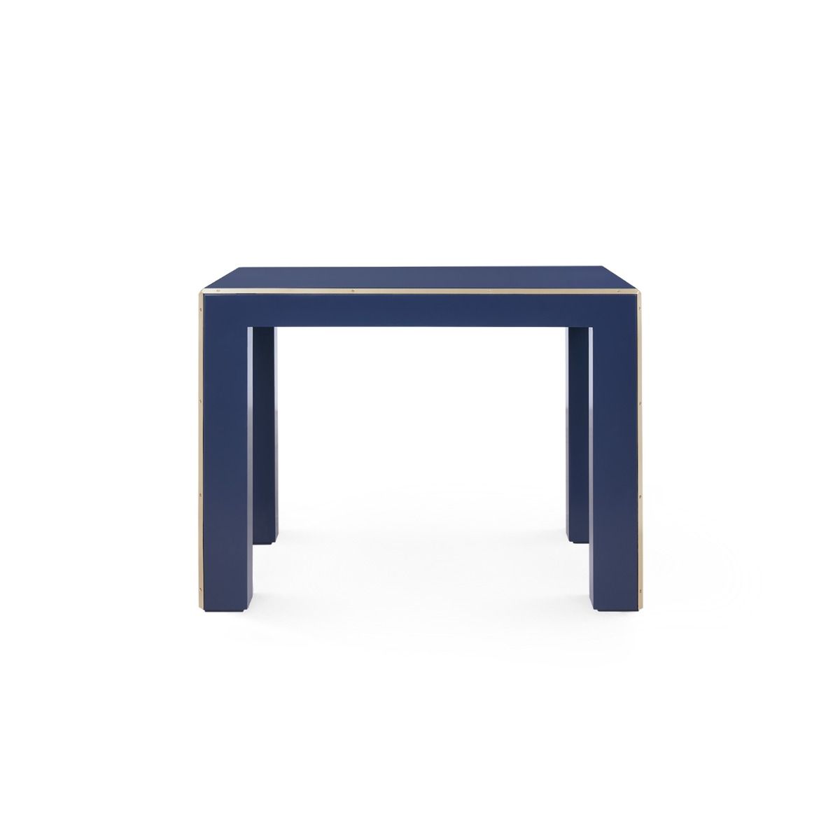 The Melissa Side Table in Midnight Blue from Villa & House is made from wood with a lustrous lacquer finish and accented by inset borders of brushed brass with decorative set screws adding boldness and refinement.
