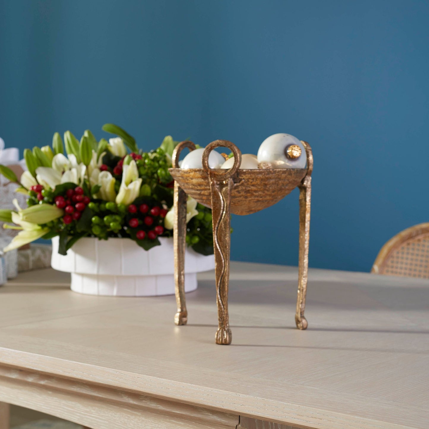 The Nestor Tripod Gold Leaf has a timeless design, made of cast metal and finished with hand-applied gold leaf. Use it for holding a candle or incense, displaying an orchid, or as a decorative piece. Perfect for a mantel or entryway console.