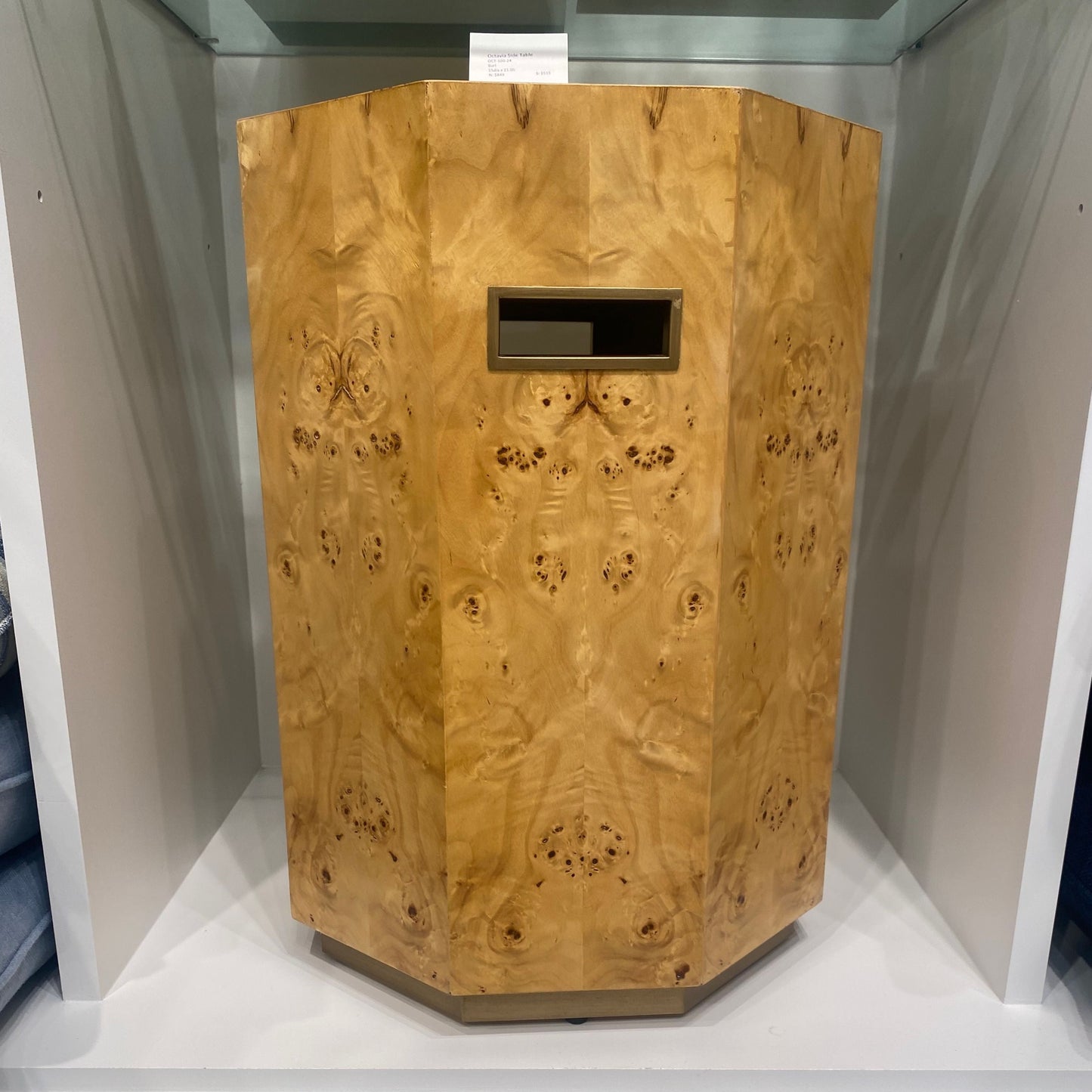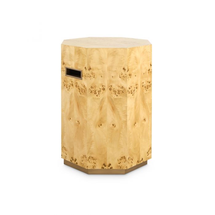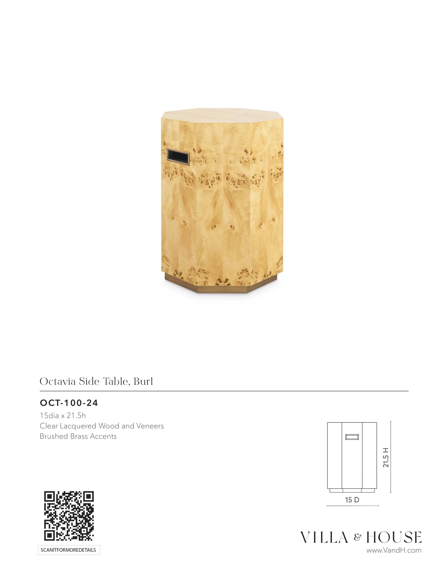 The Octavia Side Table in Burl from Villa & House fits anywhere in your home with beauty and versatility. Villa & House designers shaped this piece to highlight simplicity: its sharp, geometric lines and custom-made brass accents offer a modern touch.