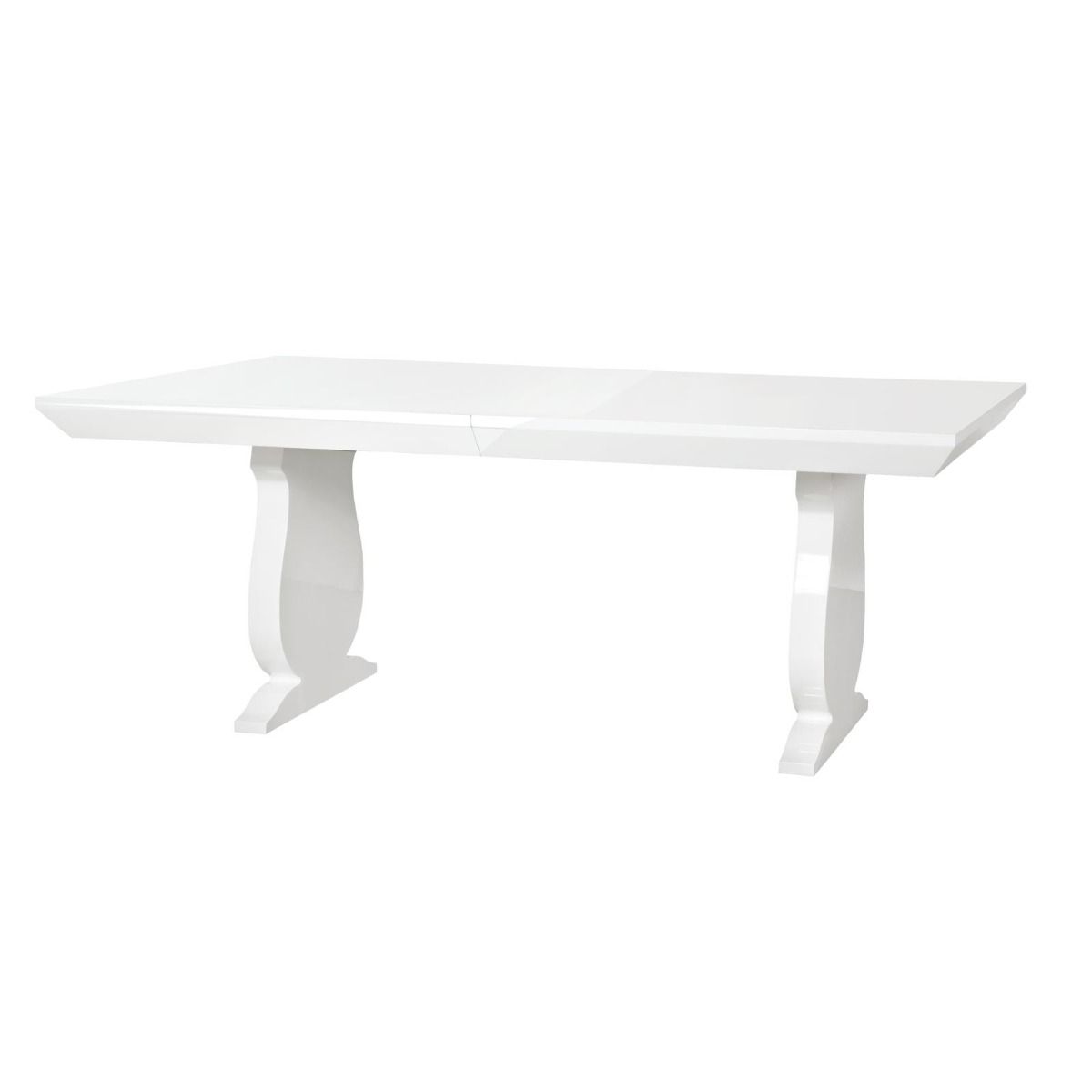 The Villa & House Porto Dining Table in White Pearl is a versatile piece, ideal for creating stunning table decorations and hosting sophisticated dinner events. The table features a sleek silhouette with a modern baluster-style base carved from wood and finished with a glossy lacquer coating.