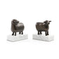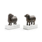 The Villa & House Sheep Bookends Pair in Bronze features a delightful portrayal of a ram and ewe on a white marble base, all finished in bronze. These bookends are perfect for counting sheep in your bedroom, holding up cookbooks in the kitchen, or adding character to open shelves, with a perfect balance of fun and usefulness.