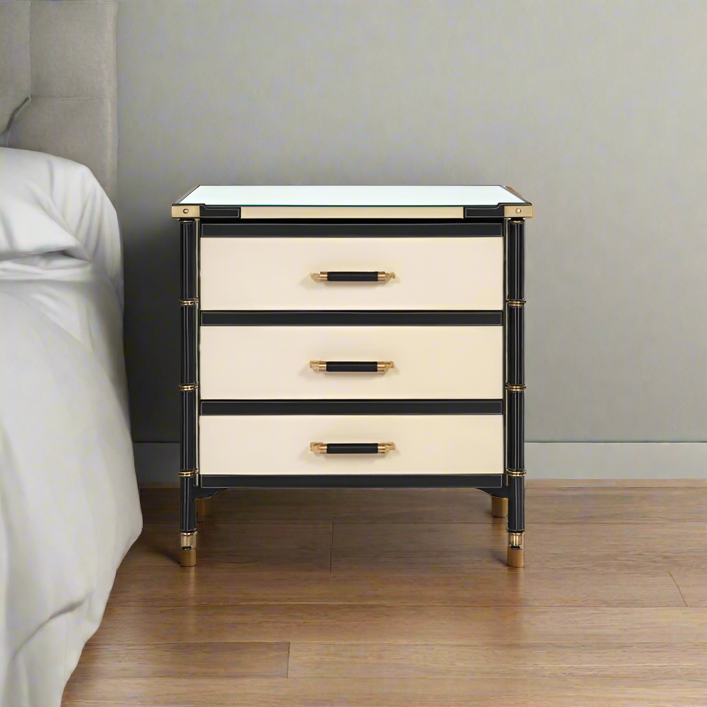 Toulon 3 Drawer Side Table Black Leather