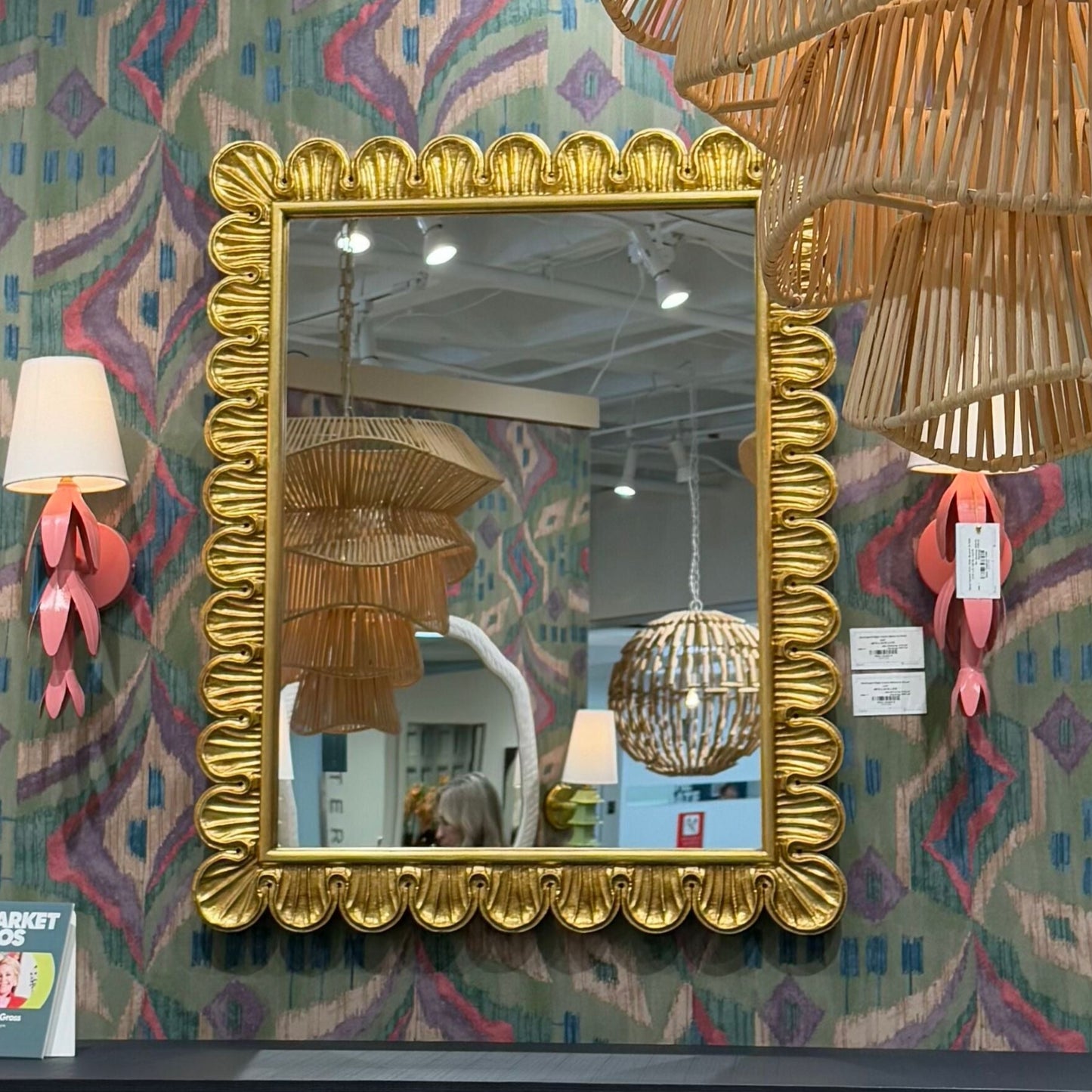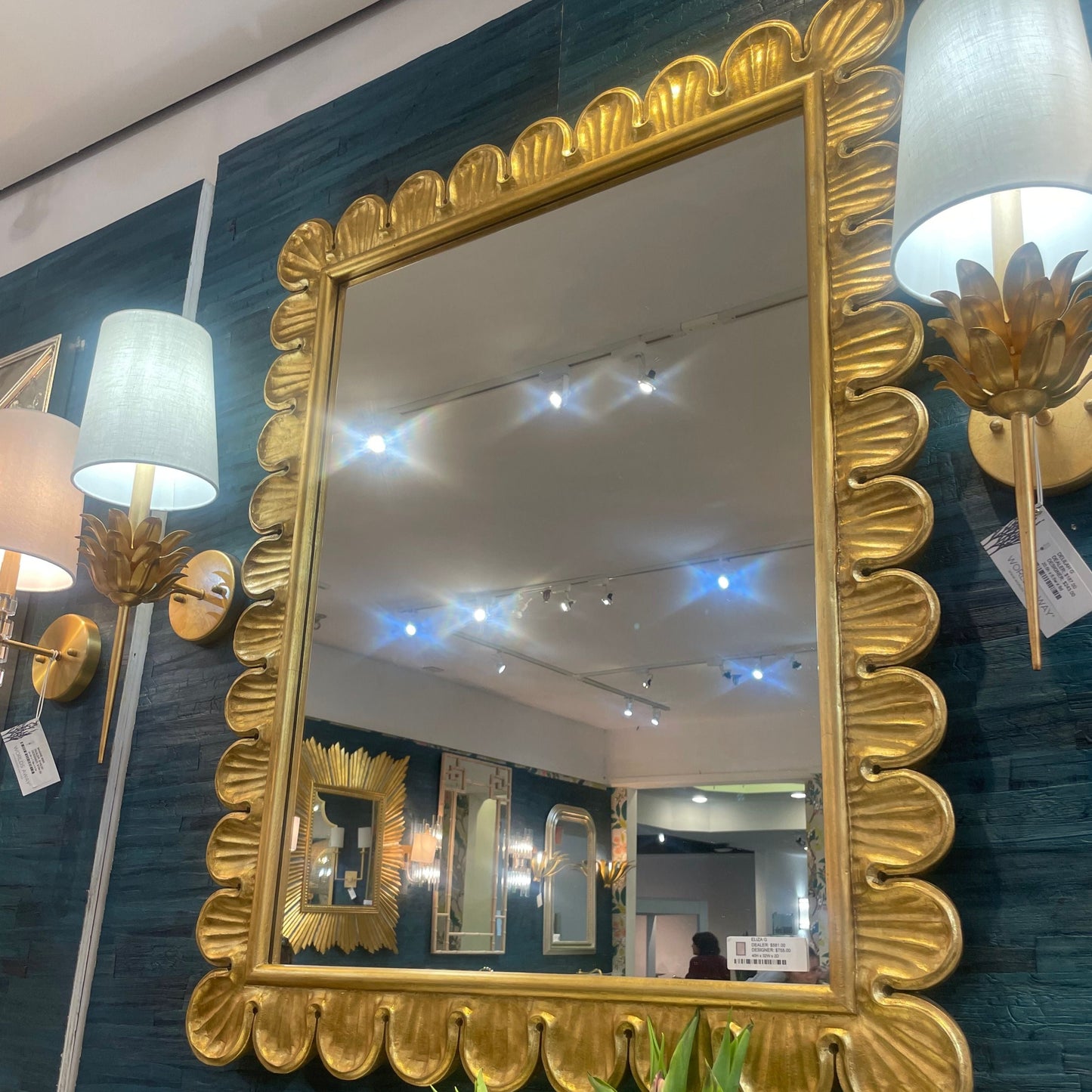 The Eliza Wall Mirror by Worlds Away has a gold leaf finished frame with an elegant rectangle shape and a distinctive scalloped edge design. Its subtle touch of glam makes it a great fit for contemporary interiors.