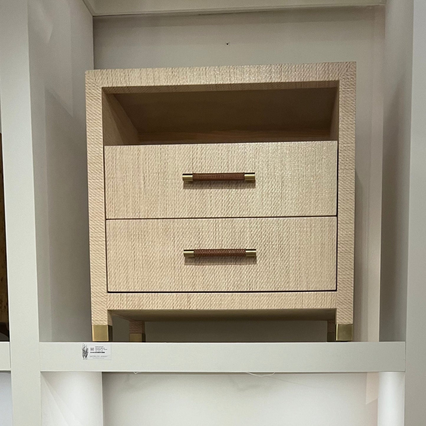Traditional tones, the Hancock Two Drawer Side Table in Natural Grasscloth from Worlds Away features rattan-wrapped handles in natural grasscloth. Ideally used as a nightstand, side tables like the versatile Hancock would be a great piece to have between two chairs in any sitting area of the home.