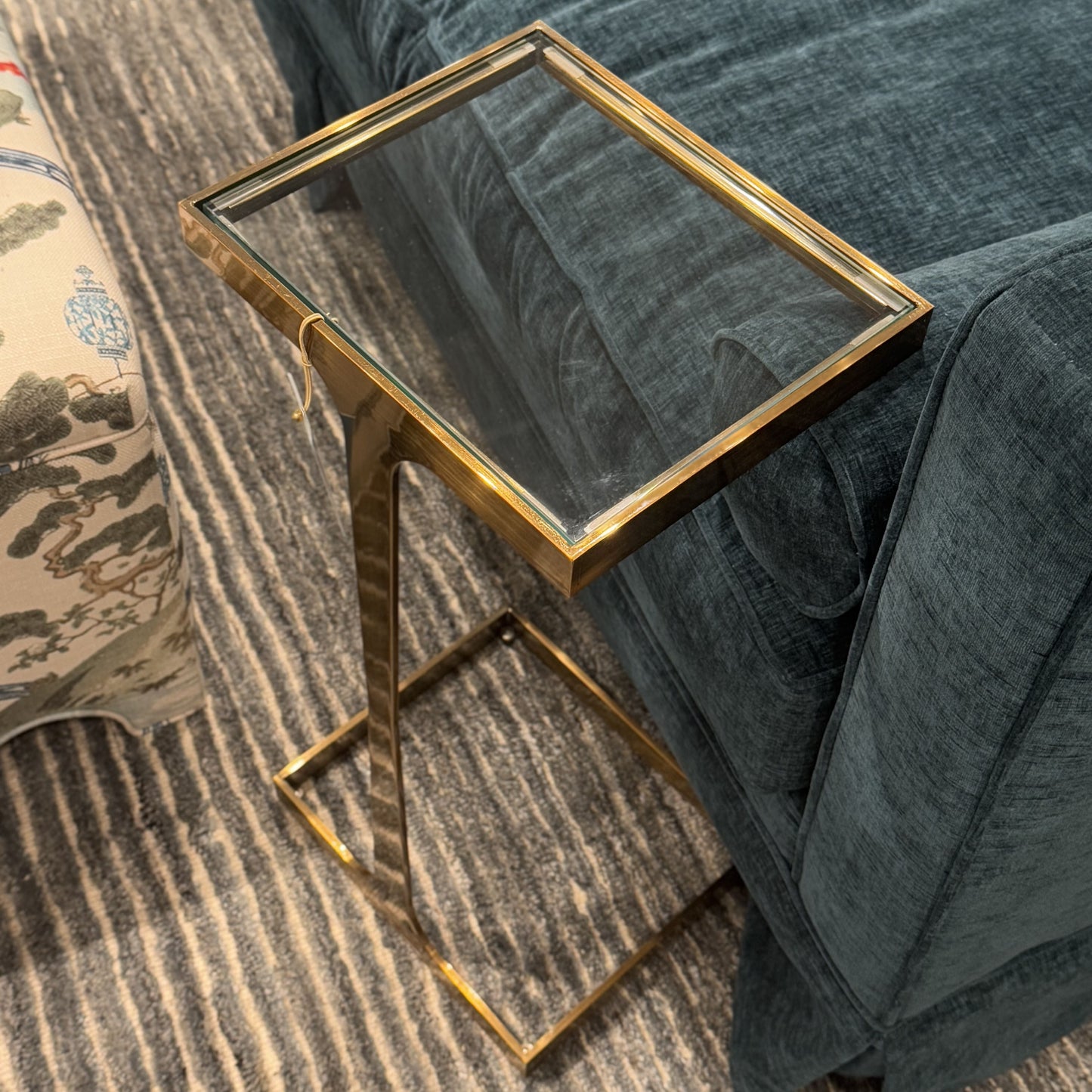 The Maisel Cigar Table in Antique Brass from Worlds Away features a glass top square set in an antique brass frame. The Maisel Cigar Table adds a touch of glamour and functionality to your living spaces. This sleek, minimal accessory table can be moved around the room when entertaining or used in tight spaces anywhere in the house.