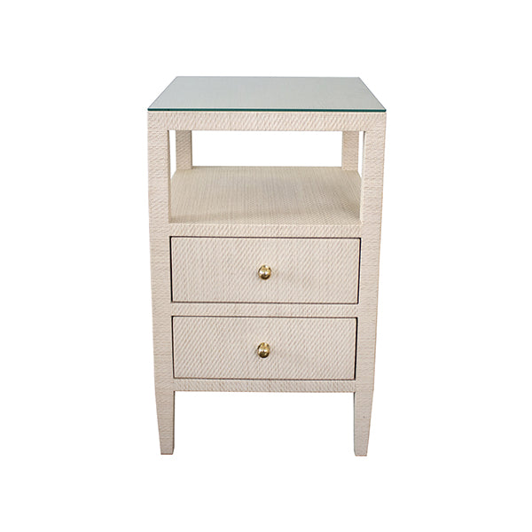 Two Drawers; Natural Grasscloth; Brass Hardware