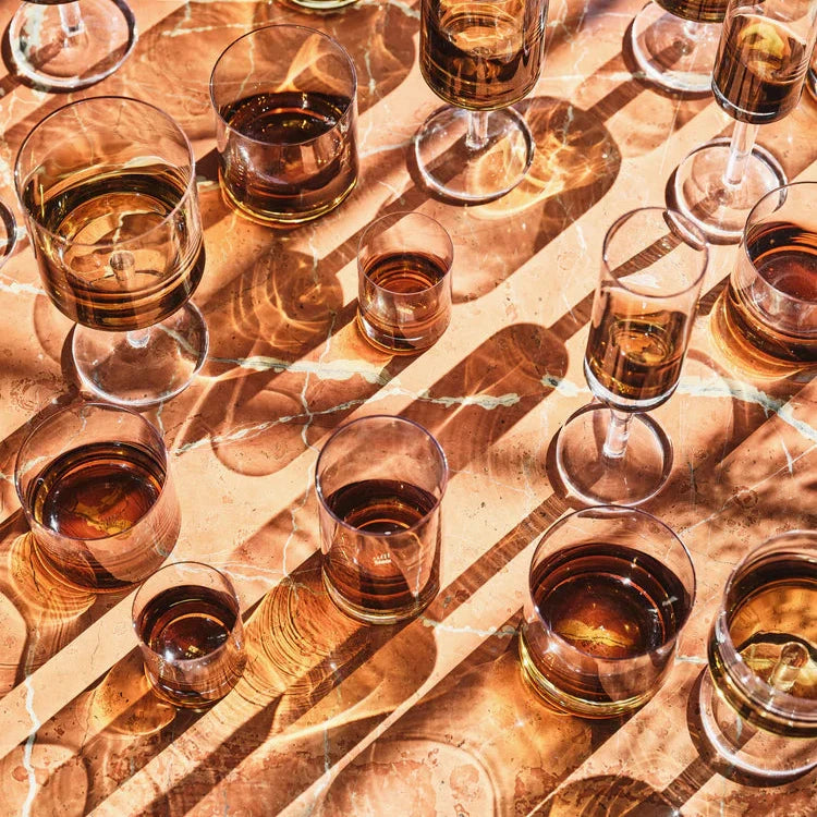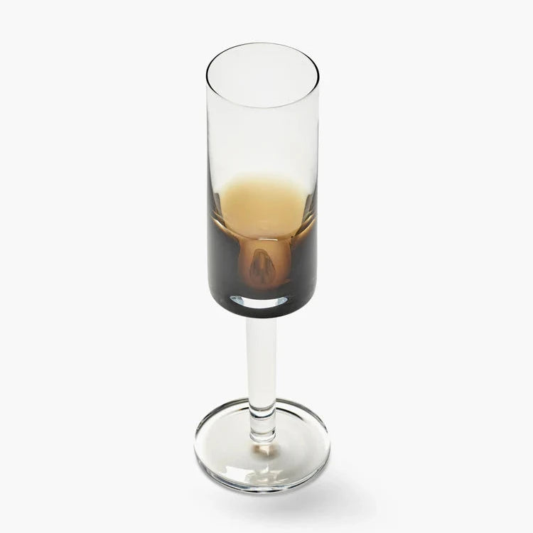 Expertly designed by Kelly Wearstler, the Serax Zuma Champagne Glass Set of 4 features three layers of amber glass that evokes a vintage charm similar to antique glassware found across the globe. The striking color gradient beautifully complements the sturdy glass base and elegant shape. *Sold as a set of 4.