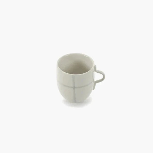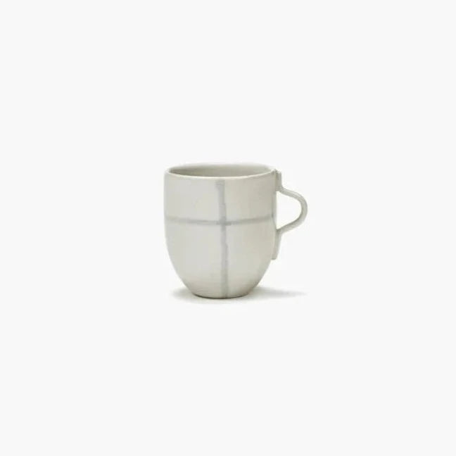 Kelly Wearstler started from a digital graphic pattern, inspired by Bauhaus principles, to design the Zuma Mug Set of 4 in Salt from Serax which features a range of porcelain tableware. Each pattern is hand-stamped onto the pieces for a hand-painted look and feel, after which the glaze is applied.