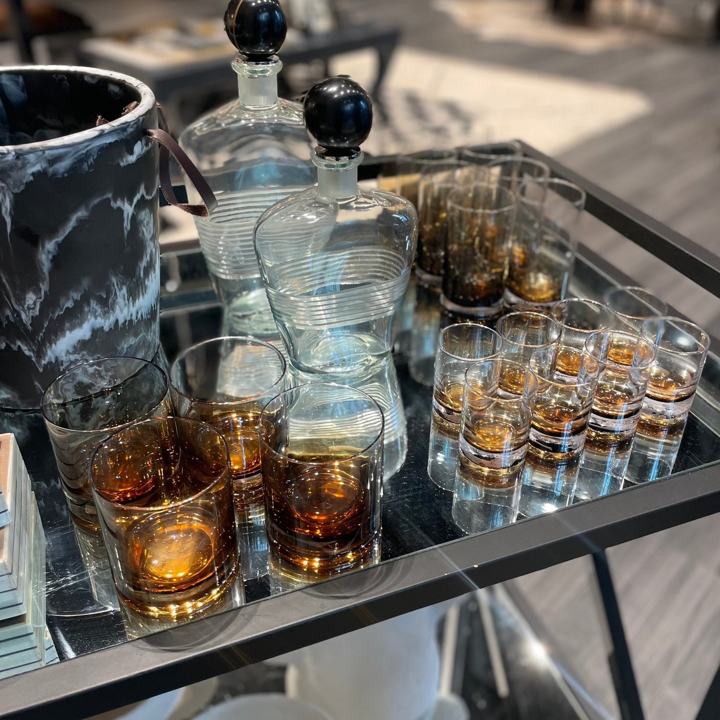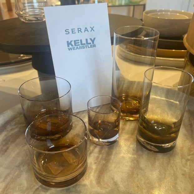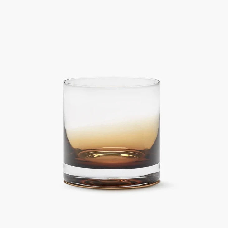 Discover the harmony between art and functionality with Kelly Wearstler's Zuma Whisky Glass Amber in a Set of 4 from Serax. This whisky glass with shimmering amber tones and dimensional patterns caresses the eye. Enjoy the versatility of these Zuma glasses, which give each drink a unique nuance.
