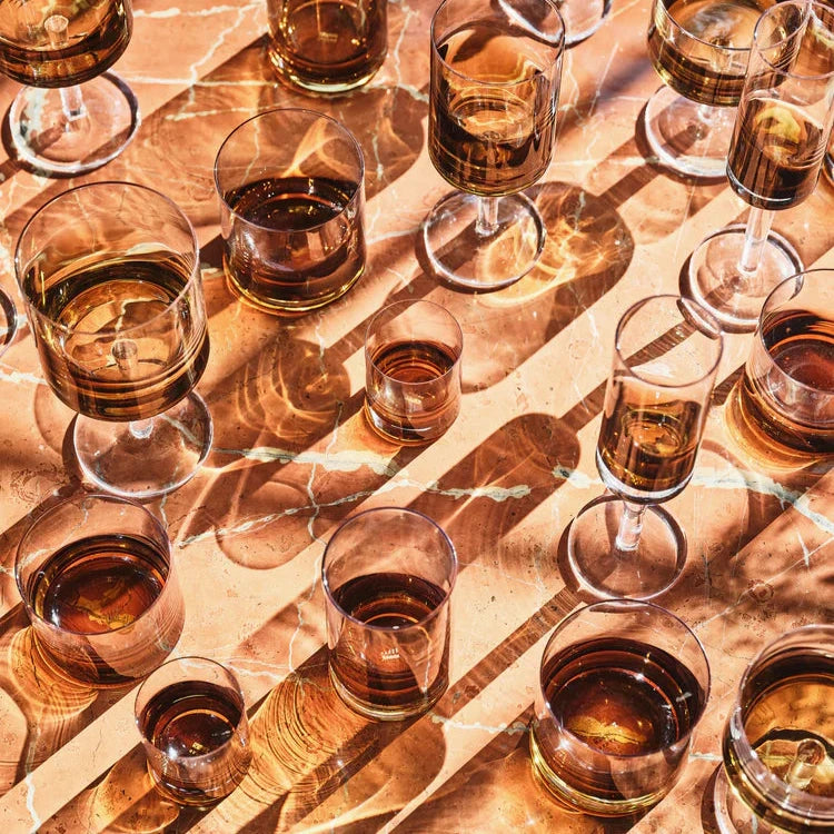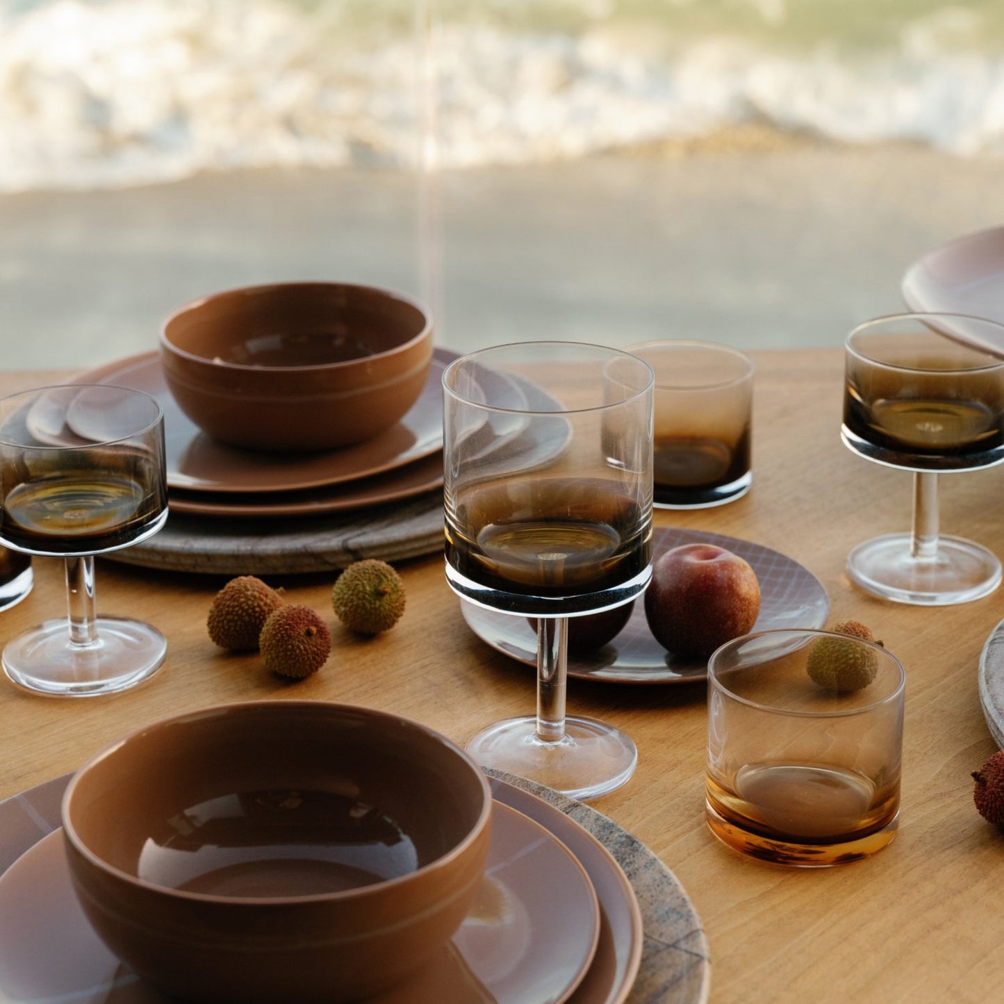 Expertly designed by Kelly Wearstler, the Serax Zuma White Wine Glass Set of 4 features three layers of amber glass that evokes a vintage charm similar to antique glassware found across the globe. The striking color gradient beautifully complements the sturdy glass base and elegant shape. *Sold as a set of 4.